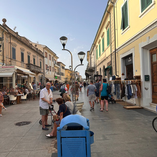 We took a stroll around town, exploring the pedestrian street and parts of the tourist harbor (filled with truly massive yachts). It wasn't as easy to find a table as it had been in the other towns we visited, but we succeeded in finding a spot near the church. Squid, raw tuna, and seafood pasta were among the delicious dishes ordered. Towards the end of the evening, we managed to reach out to "our new friend" Massimo, and he drove us back to the campsite. All in all, it was a wonderful, long day, and the kids fell asleep without a bedtime story or any other distractions, unlike most other nights.